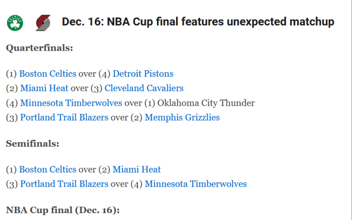 NBA杯:凯尔特人今年开拓者夺冠