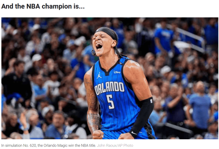 北京时间10月15日,距离新赛季NBA常规赛开战还有一周的时间。在今天早些时候,ESPN专栏作家Kevin Pelton撰写文章,从随机模拟的角度看待新赛季NBA尊鼎配资,最终预测魔术队拿到总冠军,凯尔特人队获得NBA杯的冠军。